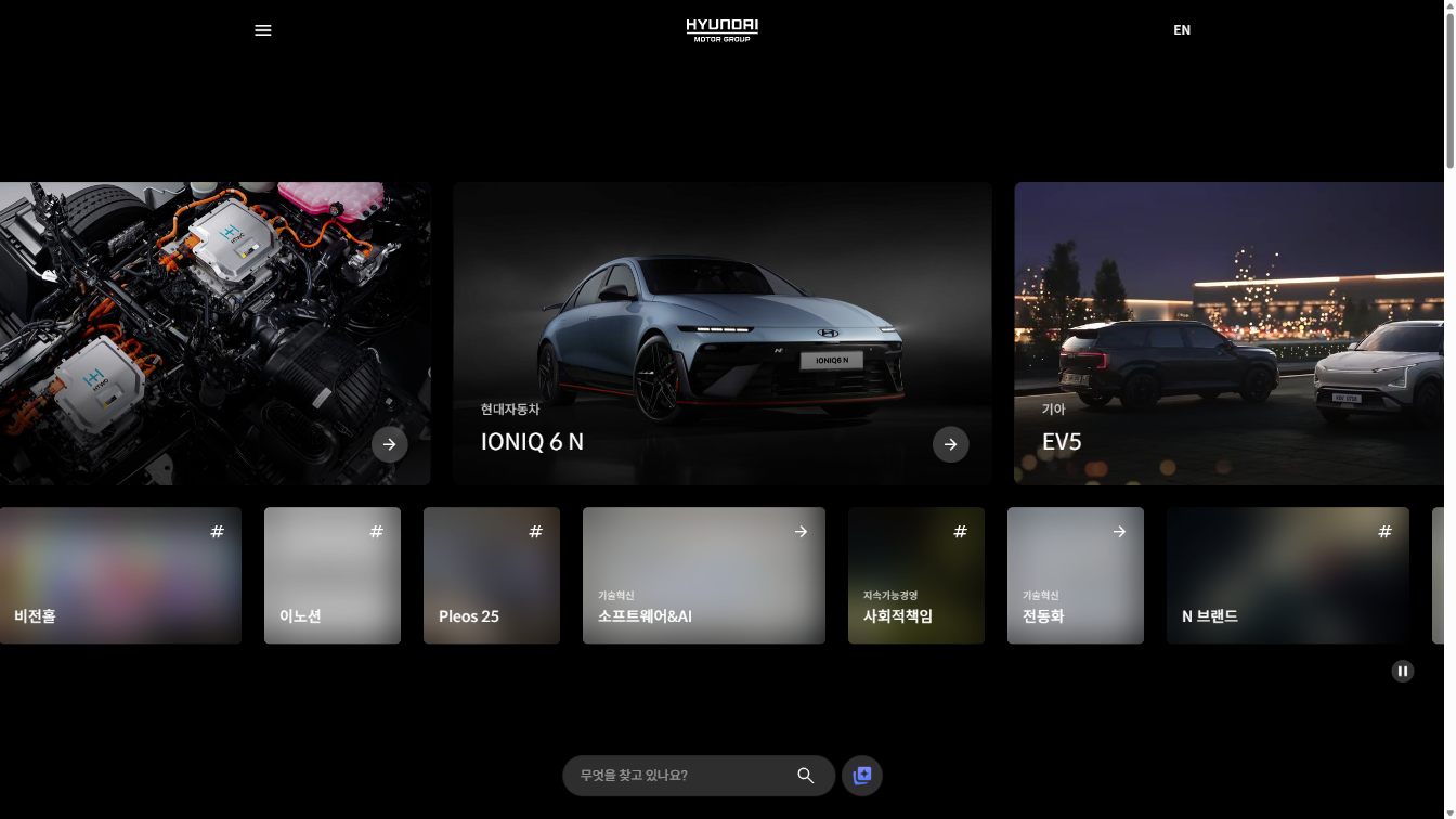 현대자동차그룹의 공식 웹사이트는 전통적인 완성차 제조사의 틀을 깨고, '스마트 모빌리티 솔루션 프로바이더'로서의 청사진을 제시하는 거대한 디지털 쇼룸입니다. 웹사이트는 SDV(소프트웨어 중심 자동차), 자율주행, 수소 에너지, 그리고 UAM(도심 항공 모빌리티)에 이르는 방대한 기술 생태계를 감각적인 영상과 인터랙티브 콘텐츠로 연결합니다. 단순히 차를 파는 공간이 아니라, 이동의 정의를 다시 쓰는 그룹의 도전 정신과 혁신 역량을 집약한 글로벌 기술 서사의 정점을 보여줍니다. (https://www.hyundaimotorgroup.com/ko/main/mainRecommend)