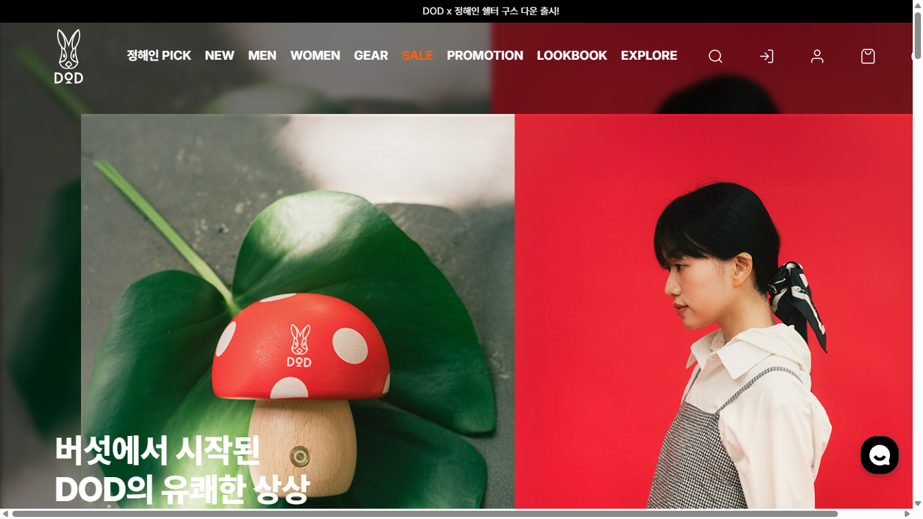 "정해인 다운"이나 "정해인 PICK" 등 배우 정해인과의 적극적인 컬래버레이션은 디오디 코리아의 강력한 마케팅 전략 중 하나입니다. 그의 세련되고 활동적인 이미지는 브랜드가 추구하는 가치와 완벽하게 부합하며, 트렌디함을 중시하는 고객층에 강력하게 어필합니다. 웹사이트는 정해인이 착용한 제품들을 전면에 내세워 '갖고 싶은' 아이템으로 포지셔닝하는 데 성공합니다.